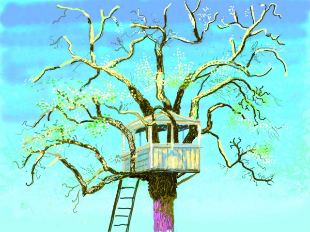 此外,英國(guó)畫(huà)家大衛(wèi)·霍克尼也選擇在iPad端分享了10幅近期在法國(guó)隔離時(shí)創(chuàng)作的作品。