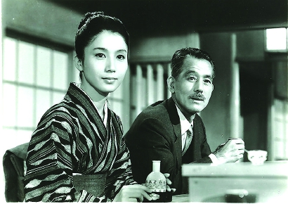 再看看1962年的收官作《秋刀魚之味》。老父勸說女兒路子趕快嫁人。而路子出嫁了,老父又借酒澆愁。嫁也醉,不嫁也醉。原來醉女是作為老父的與生俱來。秋刀魚本就是惆悵清冷的象征,放在小火爐上烤,青煙繚繞脆皮道道是它的命運(yùn)。這里,小津分明是將自己比喻為秋刀魚,讓后人放置于火爐上燒烤,并記住其味。秋刀魚,在日本是秋日之旬物。小津,在日本則是四季之旬物。敘說父女關(guān)系,沒有滑向色情,人們?cè)谏霾唤馀c怪異之際,不得不思慮小津的“超度”。