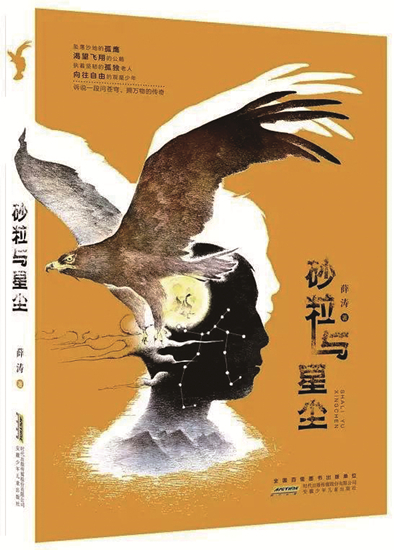 長篇小說《砂粒與星塵》的故事,發(fā)生在中國東北方的沙漠腹地,一個人煙寥寥、幾乎成為“空巢”的村落烏糧。小說的幾個主角,既有人物,也有動物。人物有年老的“鷹把式”砂爺,砂爺?shù)挠H生兒子、8年前駕鷹出走、從此杳無音信的少年砂粒,還有8年后從觀星團中走散、迷失了方向而滯留在烏糧的觀星少年星塵;動物里有一只海東青(虎子)、一只被遺棄的公鵝(公爵)、一條獨狼(狼王)和它的狼群,還有一群羊。于是,人與動物、動物與動物,在烏糧這個人跡罕至、即將被沙子掩埋的荒村里,上演了一場殘酷而持久的、驚心動魄的較量。生與死、恩與仇,正義與陰險、追尋與迷失,勇毅與怯弱、希望與絕望,還有新生與守舊、救贖與自救,都在一場場緊張的對峙與生死較量中,得以展開和呈現(xiàn)……