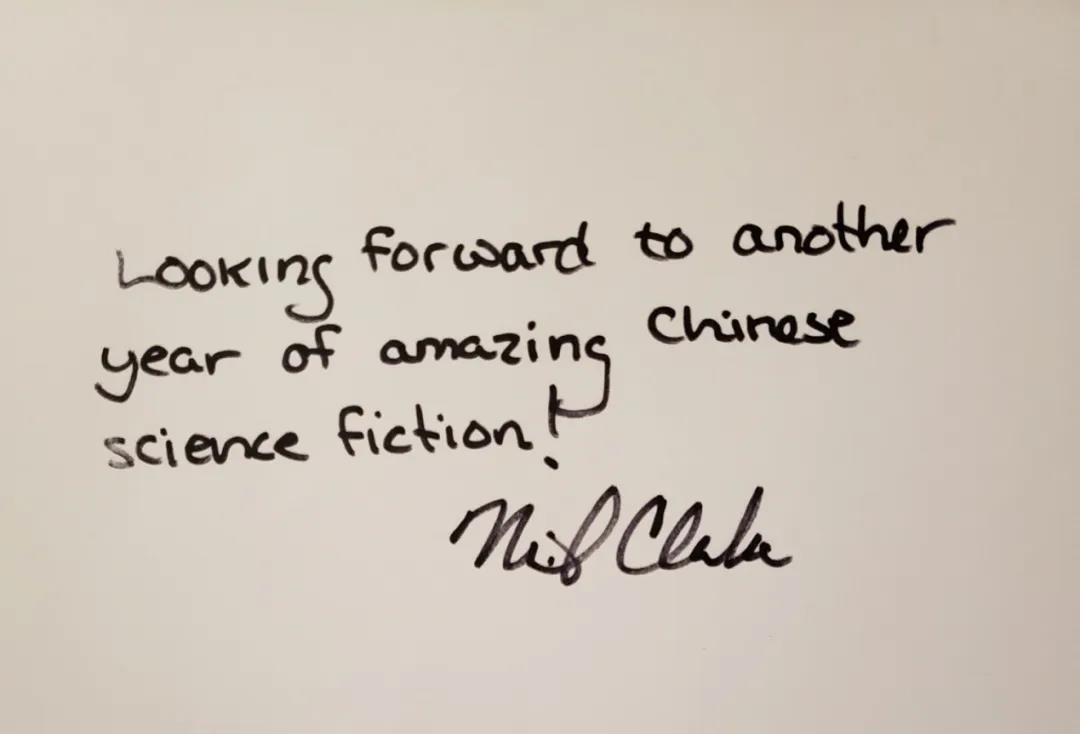圖2 尼爾·克拉克對(duì)中國(guó)科幻的祝福