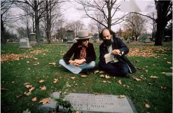 鮑勃·迪倫與金斯堡在凱魯亞克墓前
