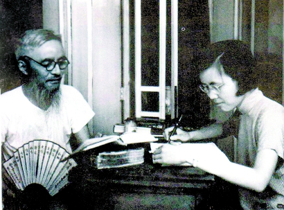 豐子愷在上海寓所日月樓與幼女豐一吟合譯《源氏物語(yǔ)》