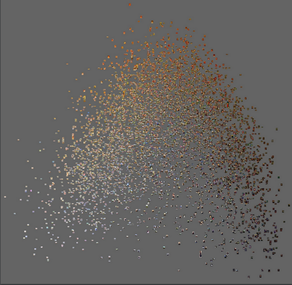 馬諾維奇教授將6000余幅印象派作品進行陳列。其中,相似度更高的作品更為靠近。圖中左下角的作品代表人們所熟知的印象派名作。我們可以看到,印象派中其實包含大量與這些名作風格迥異的作品。來源:《數(shù)據(jù)科學和數(shù)字藝術(shù)史》報告