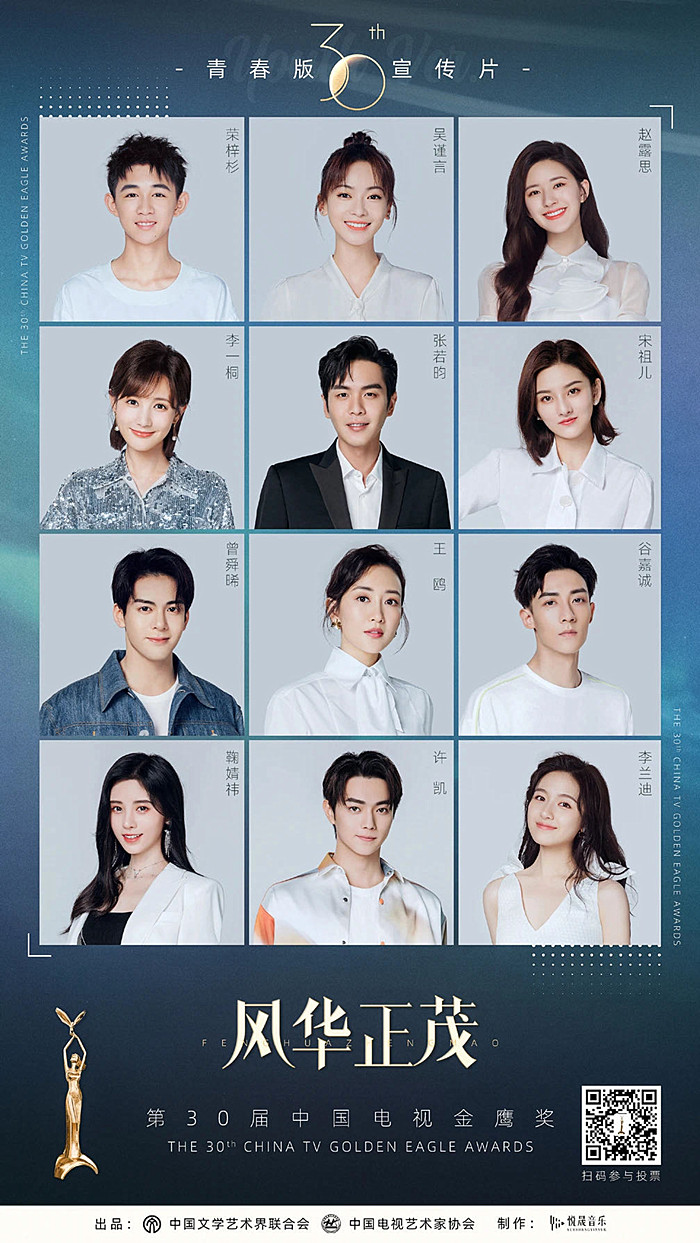 中國文聯(lián)、中國視協(xié)全新制作發(fā)布了第30屆中國電視金鷹獎宣傳片《灼灼其華》和青春版宣傳片《風(fēng)華正茂》。