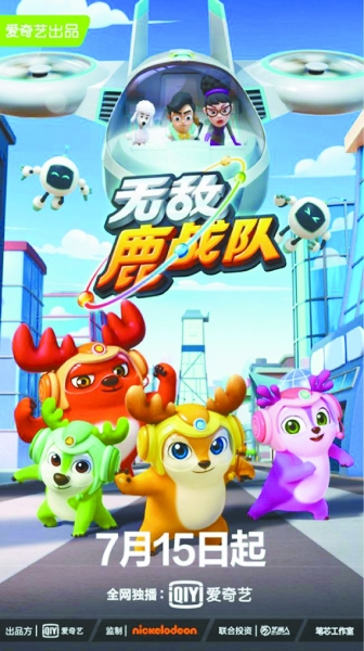 7月15日,由愛奇藝出品,美國維亞康母旗下尼克兒童頻道參與創(chuàng)意及內(nèi)容監(jiān)制的動畫系列片《無敵鹿戰(zhàn)隊(duì)》上線愛奇藝兒童頻道,并將于8月登陸尼克兒童頻道(Nickelodeon)亞洲市場。這也是首個(gè)在創(chuàng)意階段就被國際知名電視媒體預(yù)購的中國原創(chuàng)IP動畫。