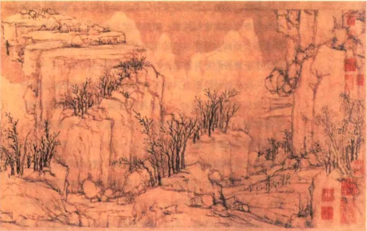 我卻對于東路鐘粹宮的字畫,和另一宮的瓷器陳列特別感到興趣。為的是可以補充我初來北京,住東琉璃廠附近那半年,每天逛琉璃廠可不易見到的名畫法書。至今印象還十分清楚。范寬的《雪山圖》,董源的《龍繡郊民圖》,夏圭的《溪山清遠圖》,趙松雪的《秋江疊嶂圖》……都深深吸引著我,支配著我,并產(chǎn)生種種幻想和夢境,豐富充實了我這方面的知識和感情,甚至于也影響到后來的寫作,用筆時對于山山水水的遣詞措意,分行布局,著墨輕重,遠過直接從文學(xué)上得到的啟發(fā)還加倍多。[16]