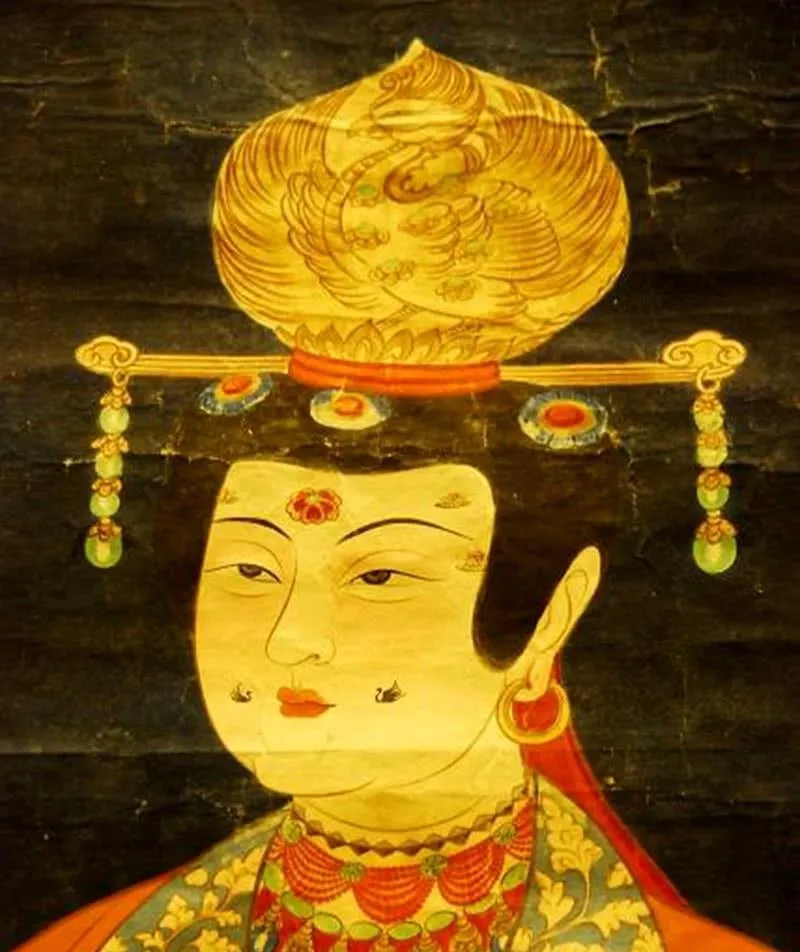 唐末五代敦煌壁畫中女供養(yǎng)人曹議金夫人的花黃臉飾(張大千摹)