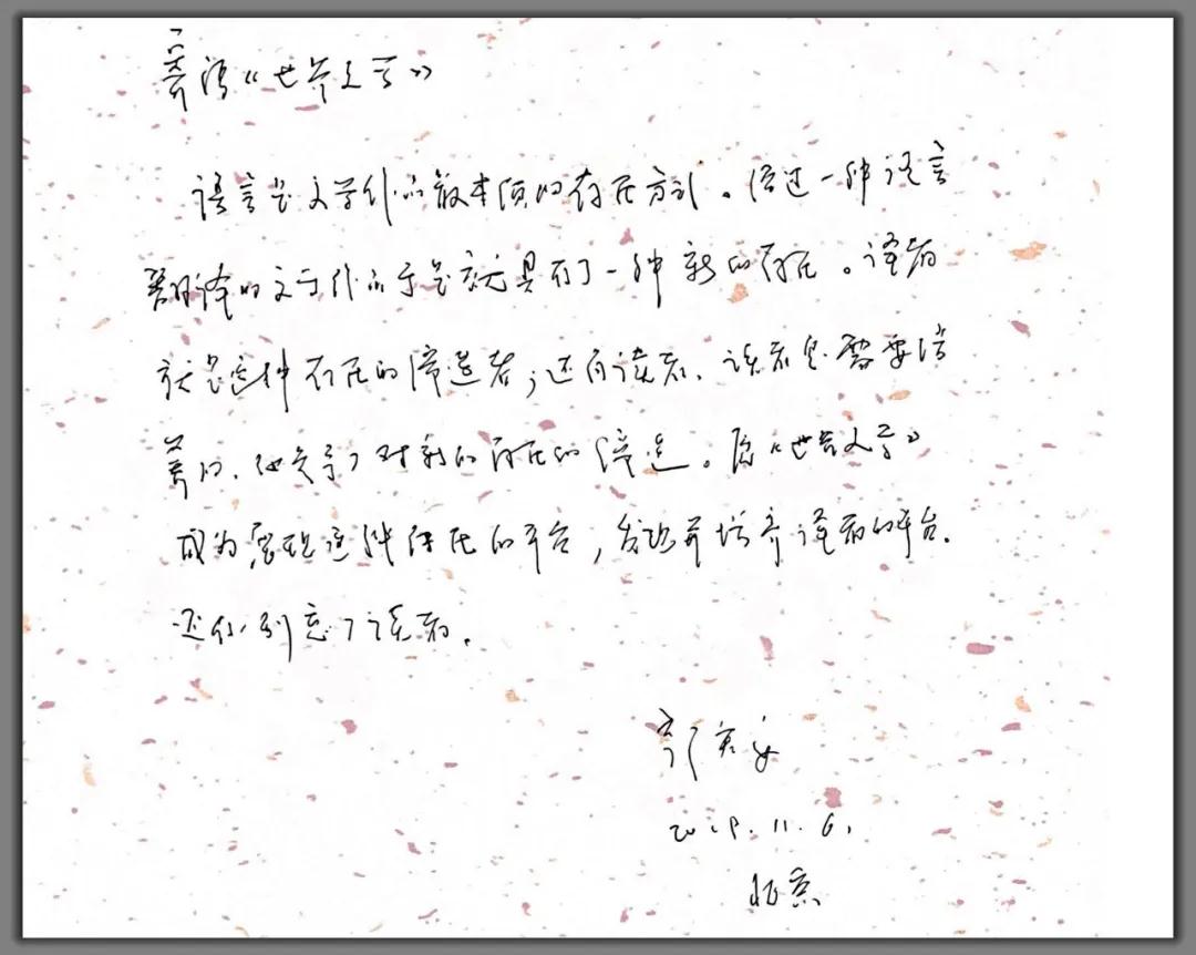 語言是文學(xué)作品最本質(zhì)的存在方式。經(jīng)過一種語言翻譯的文學(xué)作品于是就具有了一種新的存在。譯者就是這種存在的締造者;還有讀者,讀者是需要培養(yǎng)的,他參與了對新的存在的締造。愿《世界文學(xué)》成為實現(xiàn)這種存在的平臺,發(fā)現(xiàn)并培養(yǎng)譯者的平臺。還有,別忘了讀者。