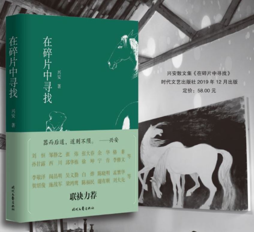 “白馬照月明,青山無(wú)古今”,這是興安在中國(guó)現(xiàn)代文學(xué)館舉辦的水墨畫展的題名,凝練地勾勒出畫展的主題,又在白馬、明月、青山的意象中透出遼遠(yuǎn)和曠達(dá)的意境,顯示了興安浸潤(rùn)在繪畫和文學(xué)中,通透了彼此的審美意蘊(yùn)。在他的最新隨筆集《在碎片中尋找》的后記中,興安追溯他五年前重拾畫筆,開始水墨藝術(shù)創(chuàng)作時(shí),用了如此的比喻:“如果繪畫是一顆美味的果實(shí),那么文學(xué)便是一棵參天大樹。我就是攀援在樹杈上的一個(gè)懵懂少年,當(dāng)我兩鬢斑白的時(shí)候,我終于摘到了那顆果實(shí)?!?/p>