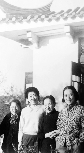 1950年代初期,黃慶云(右一)與冰心(右二)、廖夢(mèng)醒(左一)、日本作家松岡洋子(左二)
