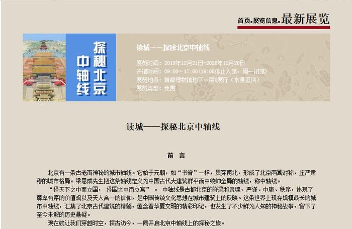 對北京城感興趣的,不妨去看看正在首都博物館舉行的“讀城——探秘北京中軸線”展覽,時間是2019年12月21日-2020年12月20日。