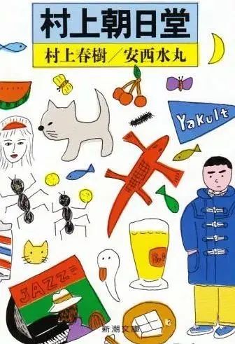 兩人還合作過(guò)關(guān)于貓的繪本《軟綿綿》,和歌紙牌《村上和歌紙牌 兔子美味 法國(guó)人》,以及一系列“村上朝日堂”散文。水丸畫(huà)筆下的村上很好辨認(rèn),平頭,濃眉,豆子眼。表情的細(xì)微變化全靠眉毛表現(xiàn)。鍛煉時(shí)的圓領(lǐng)白T恤,冬天的藍(lán)色兜帽大衣,都是招牌式的村上春樹(shù)。1999年,水丸還為《BRUTUS》封面畫(huà)了馬拉松跑者村上。