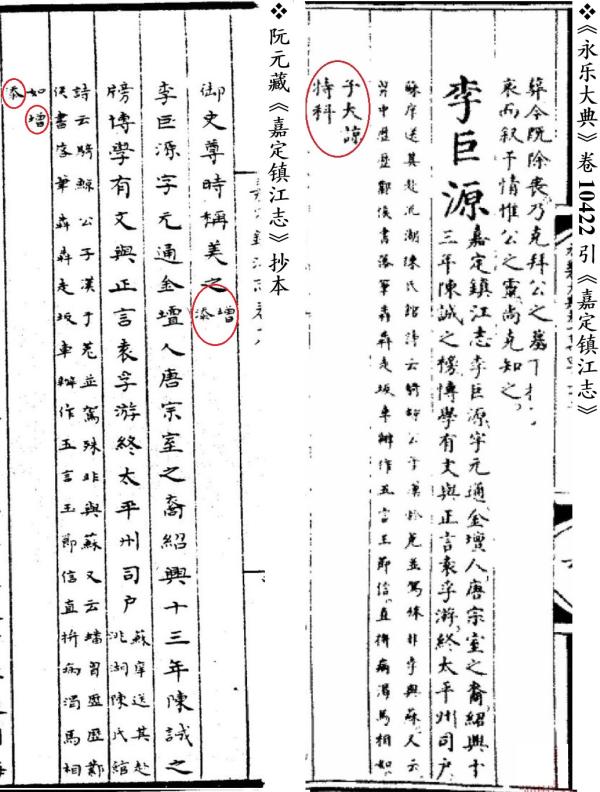 李巨源小傳(《永樂大典》卷10422引《嘉定鎮(zhèn)江志》、阮藏《嘉定鎮(zhèn)江志》抄本)