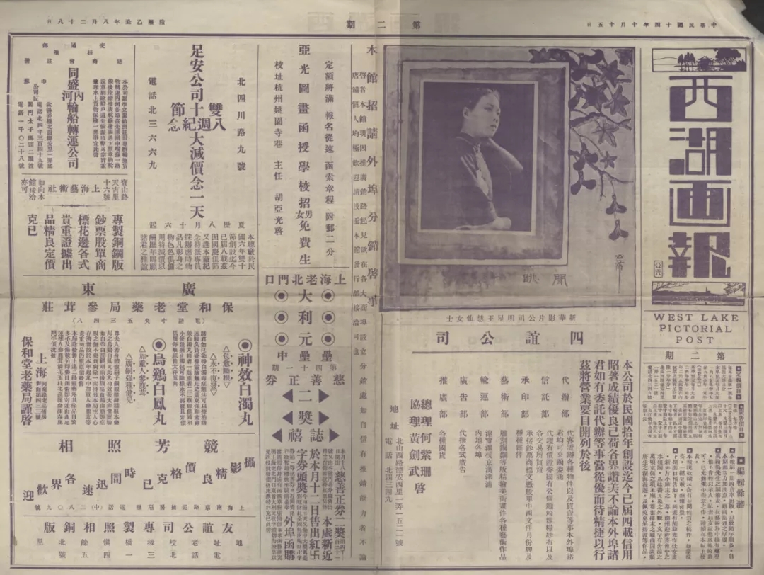 《西湖畫報》創(chuàng)刊號反面