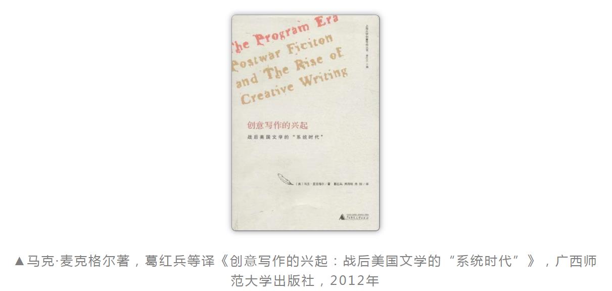 ??上海大學(xué)創(chuàng)意寫作叢書總序,見馬克·麥克格爾著,葛紅兵等譯《創(chuàng)意寫作的興起:戰(zhàn)后美國文學(xué)的“系統(tǒng)時(shí)代”》,廣西師范大學(xué)出版社,2012,第2、3頁。