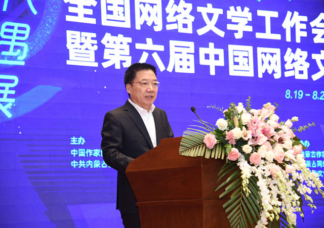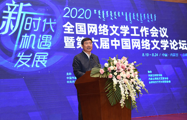 8月21日,由中國(guó)作家協(xié)會(huì)、中共內(nèi)蒙古自治區(qū)委員會(huì)宣傳部主辦,中國(guó)作家協(xié)會(huì)網(wǎng)絡(luò)文學(xué)中心、內(nèi)蒙古自治區(qū)文學(xué)藝術(shù)界聯(lián)合會(huì)、中共赤峰市委員會(huì)宣傳部承辦的第六屆中國(guó)網(wǎng)絡(luò)文學(xué)論壇在內(nèi)蒙古自治區(qū)赤峰市開(kāi)幕。中國(guó)作協(xié)黨組成員胡邦勝,內(nèi)蒙古自治區(qū)黨委宣傳部副部長(zhǎng)、電影局局長(zhǎng)烏恩奇出席開(kāi)幕式并致辭。開(kāi)幕式由中國(guó)作協(xié)網(wǎng)絡(luò)文學(xué)中心副主任何弘主持。