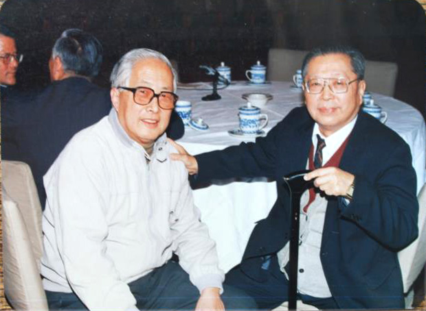 華君武(左)與曹禺 鄒士方 攝(1989年春節(jié))