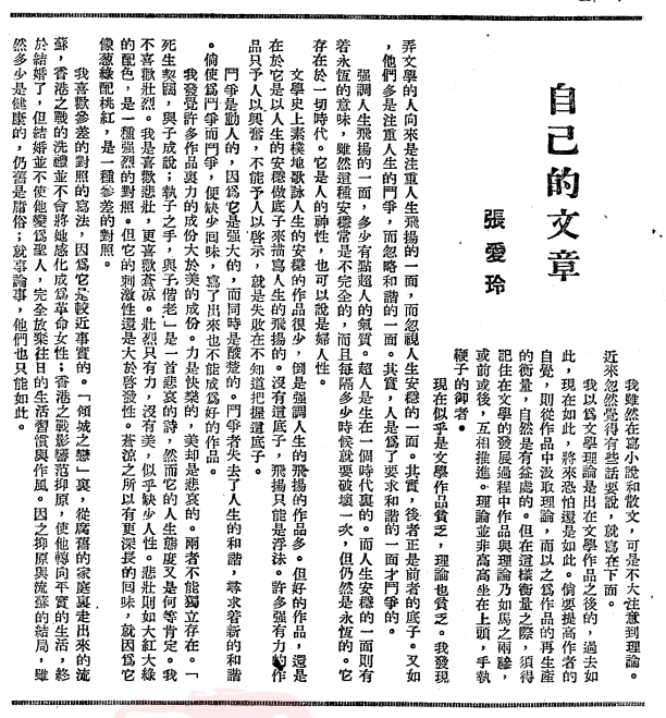 [15]張愛玲:《自己的文章》,《新東方雜志》第9卷第4、5月號合刊,1944年5月。