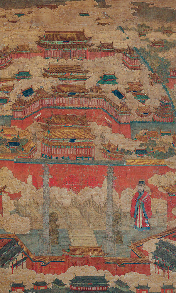 下面的這件臺北故宮博物院藏(展出的為復制品)的明代晚期的《入蹕圖》也詳細地描繪了明代的宮殿的建構。