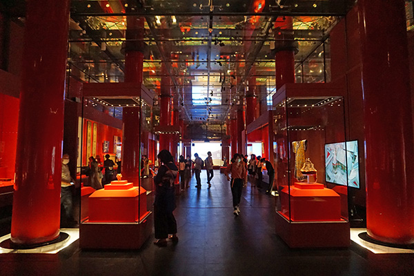 故宮午門正樓展廳主題為“有容乃大”,空間色彩采用紅色,烘托出清代紫禁城宮殿建筑及內檐裝飾的華麗與精美,同時講述清代各個時期紫禁城建筑格局與風格的變化。