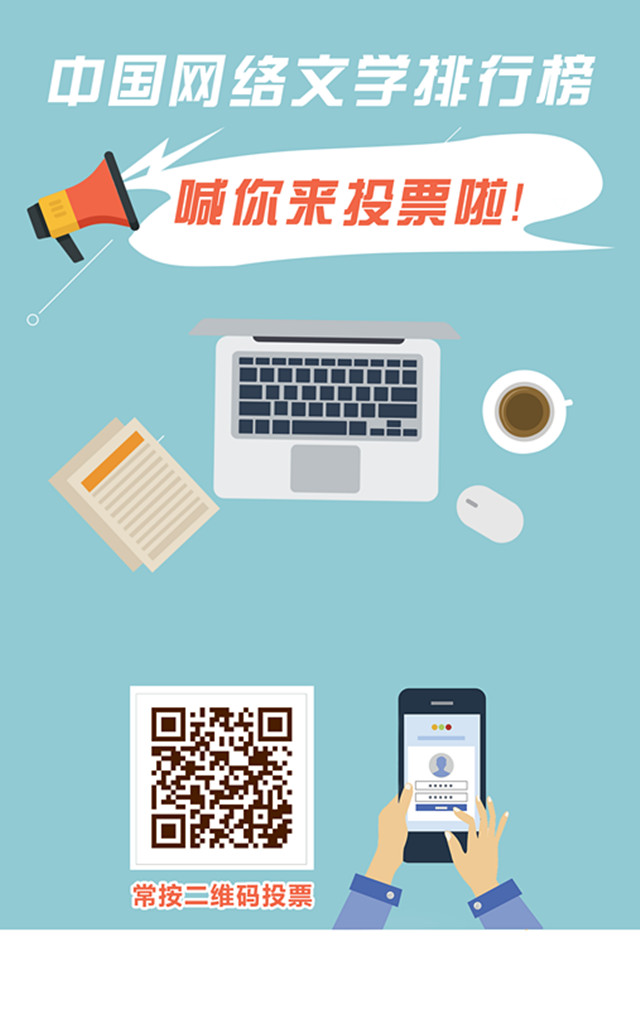 為體現(xiàn)網(wǎng)絡(luò)文學(xué)的傳播特征和市場(chǎng)特征,充分發(fā)揮廣大網(wǎng)絡(luò)讀者在網(wǎng)絡(luò)文學(xué)創(chuàng)作和傳播中的能動(dòng)性,本次評(píng)審特別增加了讀者網(wǎng)絡(luò)投票環(huán)節(jié),在中國(guó)作家網(wǎng)微信公眾號(hào)開設(shè)投票端口,于9月14日12點(diǎn)正式上線。讀者可進(jìn)入“中國(guó)作家網(wǎng)”公眾號(hào)首頁(yè),點(diǎn)擊底部菜單,選擇“投票通道”,進(jìn)入《排行榜喊你來投票啦》,掃描二維碼即可進(jìn)入投票頁(yè)面。投票截止時(shí)間為9月28日8時(shí)。