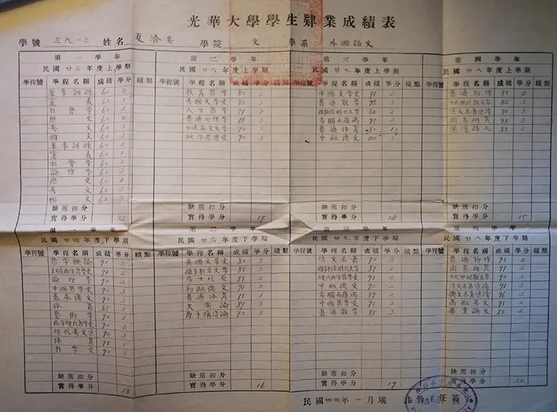夏濟(jì)安光華大學(xué)成績單