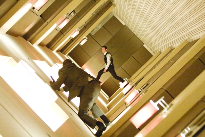 心智游戲電影還十分喜歡塑造心智異常的主人公。在諾蘭的成名作《記憶碎片》中,主人公就患有失憶癥。還有諸如精神分裂癥、妄想狂、歇斯底里癥等都是心智游戲電影十分喜愛的主人公狀態(tài)。這些病癥性人物看似失去了控制,但他們的思想?yún)s有可能獲得一種與我們目前所處的人造的、程序化的和自動化的環(huán)境的新關系,成為適應這個由媒介與科技統(tǒng)治環(huán)境的新人形象。比如妄想癥對我們現(xiàn)在所處的網(wǎng)絡社會可能變成一種財富,它能夠依靠身體直覺,對環(huán)境高度敏感,從而發(fā)現(xiàn)新的聯(lián)系?!缎艞l》里反復告誡我們不要試圖去理解,而是去感受,就是一種妄想癥的思維模式。而失憶癥則使人具有一種隨機反應、多重任務的人格特征。《信條》的主人公就被塑造成失憶癥的狀態(tài),他雖然來自未來,但卻對此毫無記憶。他的身體被完全編輯到這個拯救世界的程序之中,失憶反而成為一個武器,讓他就像一個聰明的炮彈,不斷接受被編程的任務并嚴格執(zhí)行。