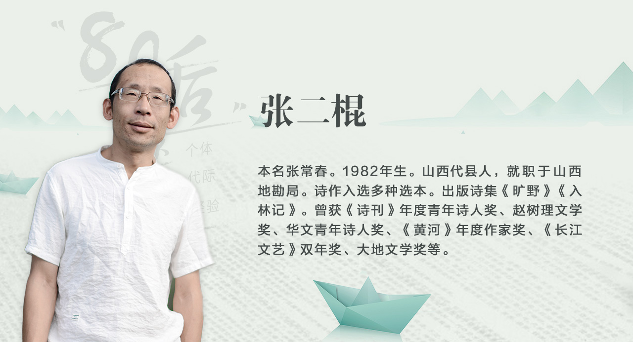 這兩年,張二棍將更多的精力放在創(chuàng)作上,很少再出去走了。從2010年到現(xiàn)在,他取得了不俗的成績(jī),曾獲《詩(shī)刊》年度青年詩(shī)人獎(jiǎng)、華文青年詩(shī)人獎(jiǎng)、李杜青年詩(shī)人獎(jiǎng)、 《詩(shī)歌周刊》年度詩(shī)人等榮譽(yù),是頗具潛力的“80后”詩(shī)人。但相比于“80后”詩(shī)人的身份,他更在意自己寫了什么作品,未來(lái)是否會(huì)在更廣闊的范圍內(nèi)被討論而非局限在“80后”的范圍。他不希望很多年后自己身上僅僅只有“80后”這一個(gè)標(biāo)簽。