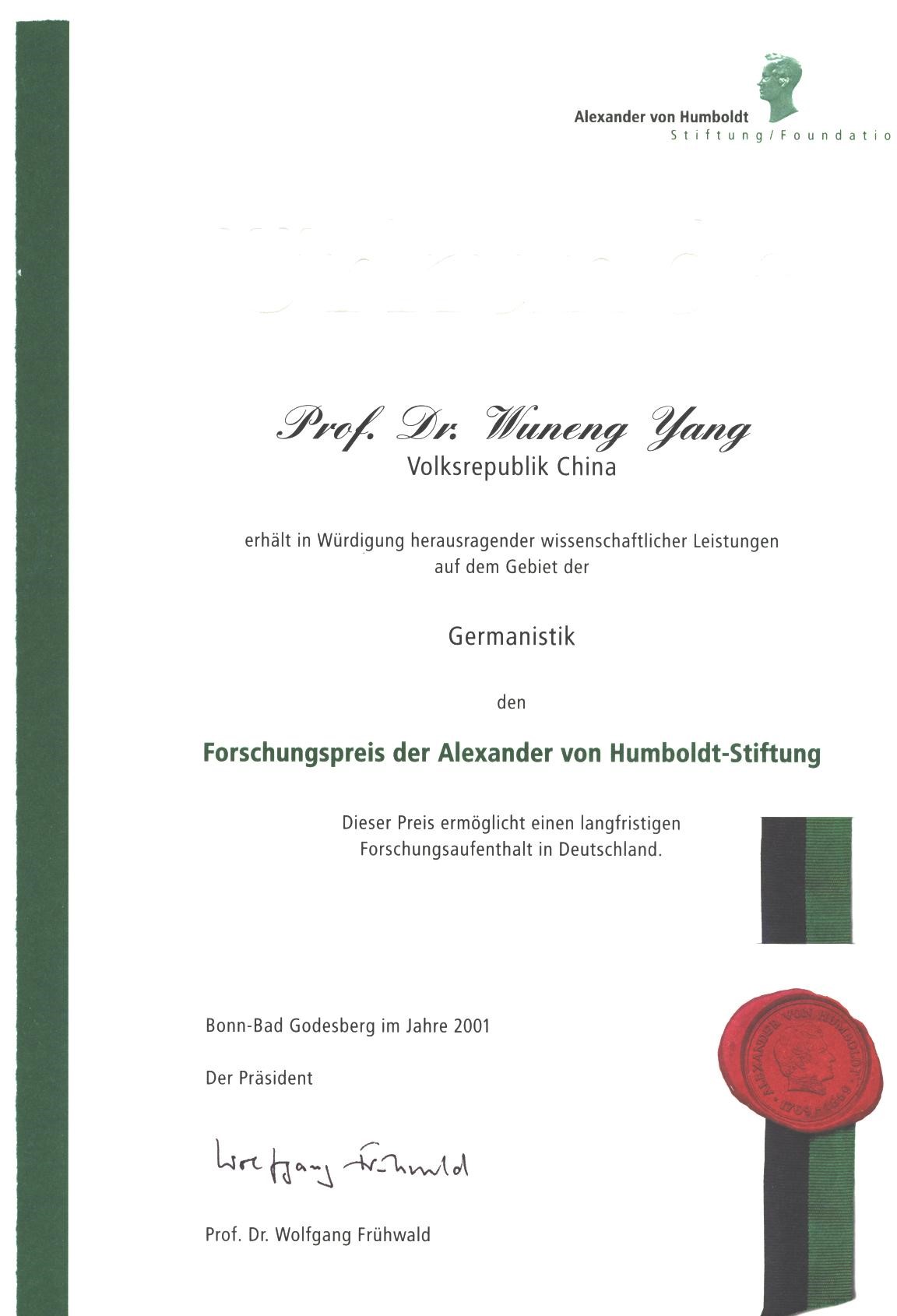 德國(guó)終身成就獎(jiǎng)性質(zhì)的洪堡學(xué)術(shù)獎(jiǎng)金