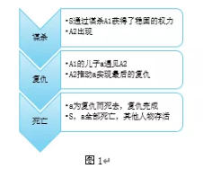 魯迅一生曾多次提到莎士比亞的戲劇[8],雖然未曾明確談及《哈姆萊特》對自己的影響,但他在《故事新編》中確實動用了戲劇的表現(xiàn)方式,在“復(fù)仇”的共同母題下,《鑄劍》與《哈姆萊特》之間具有強烈的互文之聯(lián)系[9]。若拿《哈姆萊特》與之對讀,《鑄劍》便怎么讀都像是一部“悲劇”。再簡化其事,兩個文本在普羅普“故事形態(tài)”[10]的意義上,差不多共享同一個故事模型(如圖1)
