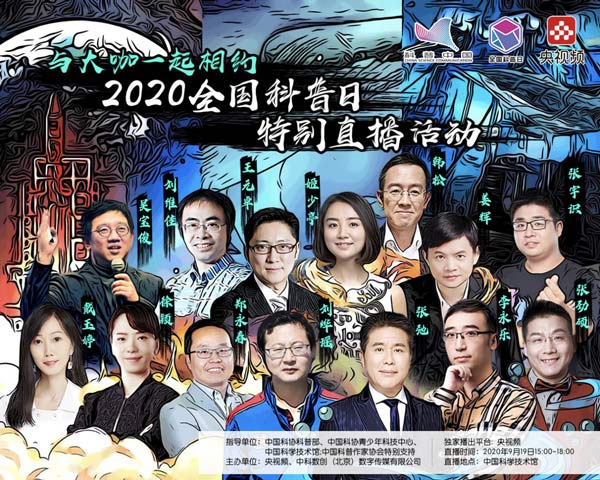 2020年9月19日,由中國科協(xié)科普部、中國科協(xié)青少年科技中心、中國科學(xué)技術(shù)館、中國科普作家協(xié)會、中國科學(xué)院大學(xué)科協(xié)共同指導(dǎo)的“全國科普日”特別直播活動在京圓滿舉行。來自航空航天、海洋探測、科幻創(chuàng)作三個領(lǐng)域的14位重要嘉賓,圍繞現(xiàn)代科技與人類未來展開了三場精彩連播。