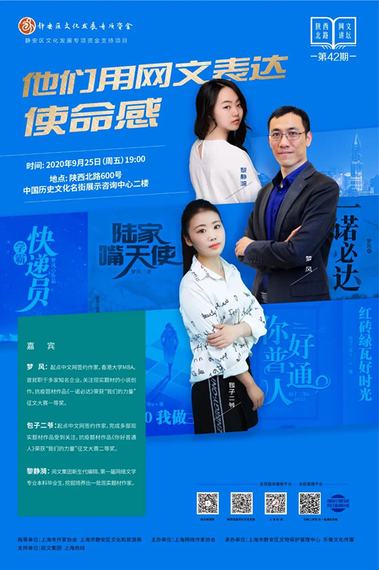 第42期陜西北路網(wǎng)文講壇邀請(qǐng)了一等獎(jiǎng)《一諾必達(dá)》作者夢(mèng)風(fēng)、二等獎(jiǎng)《你好普通人》作者包子二爺前來(lái)做客,講訴他們?nèi)绾螌?xiě)下了疫情中的中國(guó)故事。