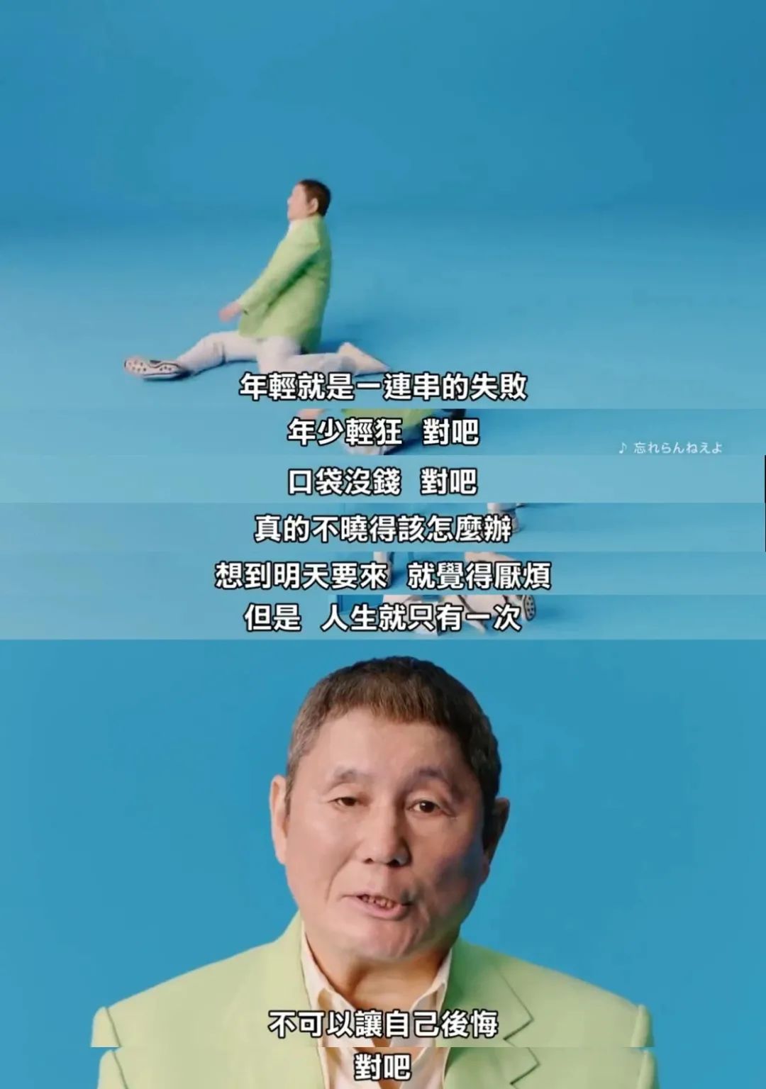 北野武今年73歲了,然而人們很難將這個集導(dǎo)演、演員、歌手、主持人、電影剪輯師、編劇、作家、詩人、畫家等多重身份于一身的傳奇人物,與“年老”這樣的詞聯(lián)系起來。“人生過得是否精彩,取決于你對自己的評價。如果自己覺得人生過得有意思,那即便是身無分文,只要有地方住,有飯吃,能做自己喜歡的事情生活下去,這樣也就足夠了?!?折騰而滾燙,就是北野武的人生。