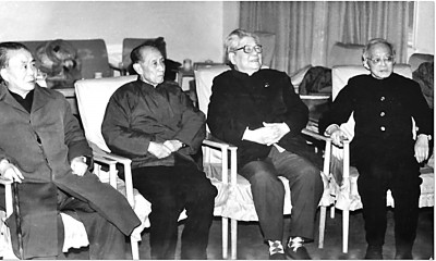 1988年,臧克家在《詩(shī)歌》社主辦的“詩(shī)歌一日”上。左起:艾青、臧克家、馮至、卞之琳。資料圖片