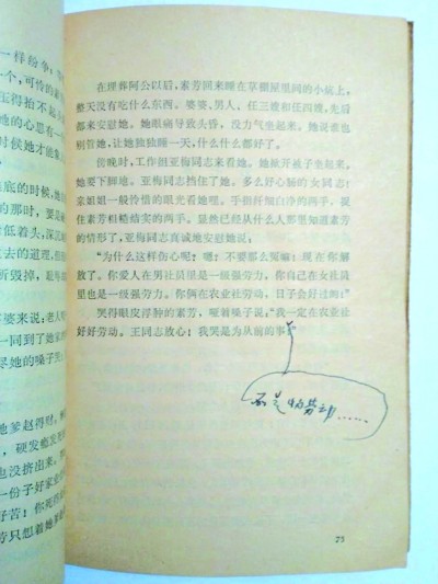 四、(第六章末句)第75頁最后一句“王同志放心!我哭是為從前的事!”在后引號內(nèi)增補:“不是怕勞動……”這句補充,寫明了素芳怕前來安慰她的王亞梅誤解自己是托病逃避勞動,也強化了她對早年自己不懂世事時所做錯事的真心悔恨。