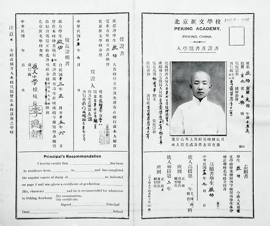 匯文學校存啟功先生檔案(1926年,民國十五年)