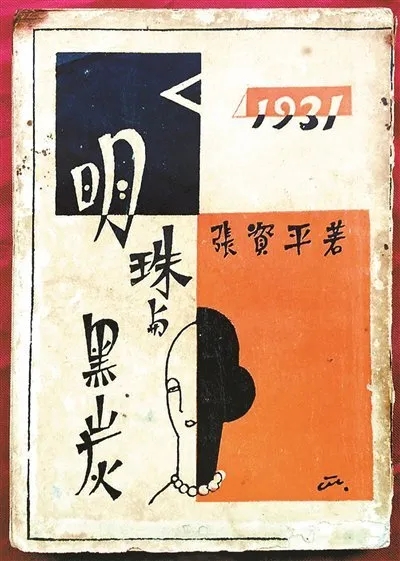 張資平的《明珠與黑炭》在色彩的搭配與條塊的分割上也頗具特色。同樣是紅、黑二色,但設(shè)計(jì)者在左上方三分之一處畫一個(gè)黑色的正方形,書名《明珠與黑炭》的“明”字大部分置于黑色正方形內(nèi),但從二分之一處開始寫,呈白色,狀似凸顯而不至于隱沒;右下三分之二處畫一個(gè)紅色的長方形,與黑色正方形構(gòu)成對角關(guān)系,長方形上方橫排的“張資平著”為黑色,一個(gè)人的一半后腦勺顯于紅色的長方形左邊界處,為黑色狀;右上方橫添一指寬的紅色的長方條,上標(biāo)出版年代—1931,但“1931”為紅白相間,顯于紅色中的“1931”為白色狀,顯于書紙?jiān)ò咨┲械摹埃保梗常薄睘楹谏髡家话?;對角“明”字的小半部分與“珠與黑炭”為黑色狀,與白底色封面成對比,另一半人的正面頭像立于書紙的原色中,與黑色狀的半個(gè)后腦勺拼接成一個(gè)完整的人頭像,但上下錯(cuò)開,暗示社會的不平與黑暗。全部構(gòu)圖紅黑對比分明,條塊切割清晰,在黑色正方形里的“明”字與在紅色長方形里的半個(gè)后腦勺,色彩落差鮮明,瞬間將讀者的注意力集中在這一巧妙的構(gòu)圖上,令人過目不忘。