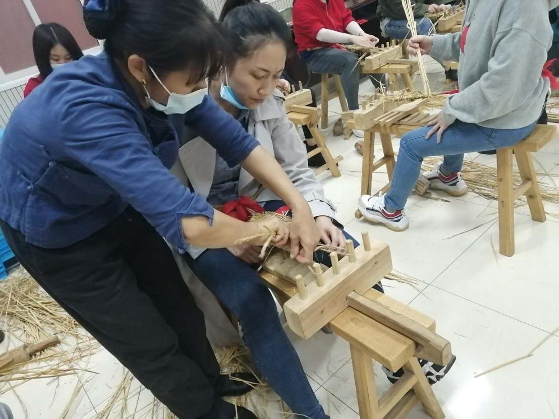 學(xué)員體驗(yàn)“學(xué)編紅軍草鞋”