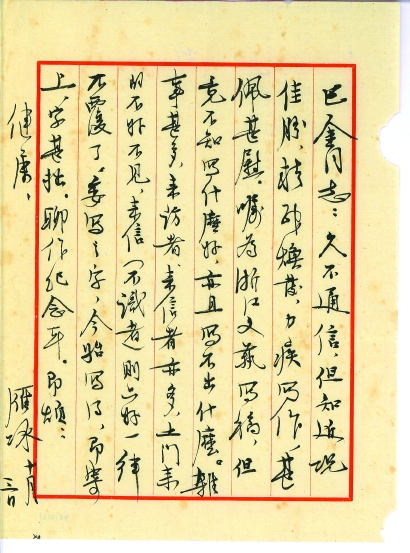 15年后,“溫暖的友情——巴金與友朋往來手札展”回到嘉興,有意無意中,展出方向竟與15年前一致,而內(nèi)容涵蓋更為豐富。其中有巴金與魯迅、郭沫若、茅盾、老舍、曹禺、葉圣陶、冰心、沈從文等40余位友人及其家屬的往來手札,巴金收藏的名家書畫作品,串聯(lián)起巴金的生平創(chuàng)作及巴金與嘉興、嘉興人的淵源。