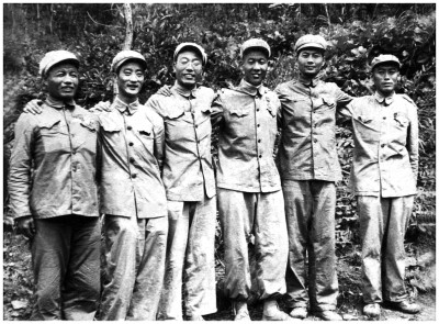 1952年8月31日,在63軍慶功會上與志愿軍特等英模合影。左起:劉光子、王永章、魏巍、郭恩志、李蕤、李滿。