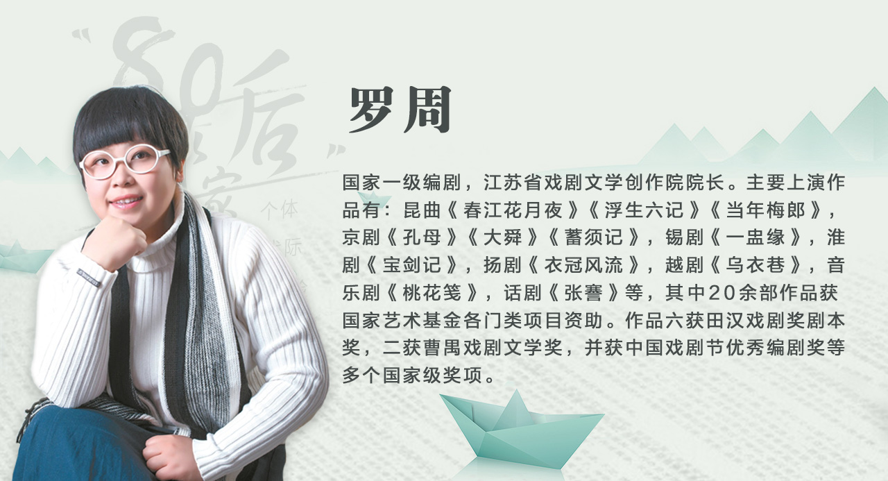 2009年,羅周還是剛到江蘇省劇目工作室的一位年輕編劇,人們看這個文學(xué)博士在這待了兩年,也未曾寫點(diǎn)什么,便猜測可能“博士”空有文學(xué)功底,但畢竟與舞臺有所疏隔。據(jù)羅周回憶,當(dāng)時的自己比較懶散,2007年她從復(fù)旦大學(xué)文學(xué)博士畢業(yè)后,出人意料地選擇了一家漫畫公司做起了腳本創(chuàng)作。直到作曲家趙震方的一個電話,使她做出了一個現(xiàn)在看來最重要的決定——到江蘇省劇目工作室做編劇。就這樣,在上海求學(xué)10年的江西人羅周,只身來到舉目無親的南京,舍棄了當(dāng)時月薪5000的優(yōu)厚待遇,心甘情愿地拿著一個月1800塊錢的工資,做起了看似冷門的專職戲曲編劇。