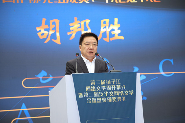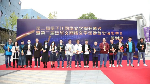 10月29日,第二屆揚(yáng)子江網(wǎng)絡(luò)文學(xué)周開(kāi)幕式暨第二屆泛華文網(wǎng)絡(luò)文學(xué)金鍵盤獎(jiǎng)?lì)C獎(jiǎng)典禮在南京江寧東山國(guó)際濱河街區(qū)舉行。中國(guó)作協(xié)黨組成員、書記處書記胡邦勝,江蘇省委宣傳部副部長(zhǎng)徐寧共同啟動(dòng)文學(xué)周系列活動(dòng)。中國(guó)作協(xié)網(wǎng)絡(luò)文學(xué)中心副主任何弘,江蘇省作協(xié)黨組書記、書記處第一書記、副主席汪興國(guó),江蘇省委統(tǒng)戰(zhàn)部副部長(zhǎng)黃仕亮,南京市委常委、宣傳部部長(zhǎng)陳勇,中國(guó)作協(xié)網(wǎng)絡(luò)文學(xué)研究院副院長(zhǎng)肖驚鴻,上海市作協(xié)專職副主席、秘書長(zhǎng)馬文運(yùn),江蘇省作協(xié)一級(jí)巡視員王朔,浙江省作協(xié)黨組副書記、省網(wǎng)絡(luò)作協(xié)主席曹啟文,安徽省文聯(lián)副主席、省作協(xié)主席許春樵,以及南京市文聯(lián)、江寧區(qū)委領(lǐng)導(dǎo)等出席開(kāi)幕式。