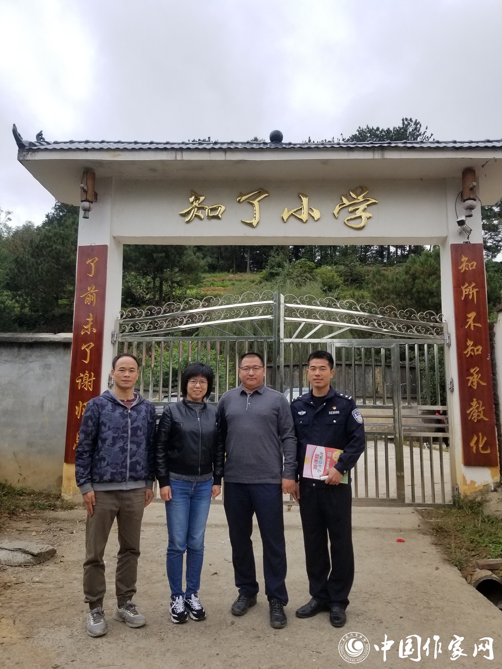 公安作家謝沁立在廣西三江縣知了小學(xué)采訪
