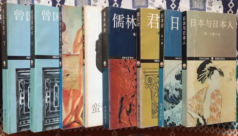 內(nèi)容如此,裝幀更是有品,珠櫝相宜,自不待言。文庫(kù)按不同的輯次,封面分成幾種顏色。書脊的設(shè)計(jì)別具匠心,除了通常的書名、作者之外,還直觀地體現(xiàn)出文庫(kù)名、序號(hào)等要素,頗得日本新書(此新書非指新近出版物,而是日版書的一種獨(dú)特的開本,相當(dāng)于四十二開)文化之精髓。