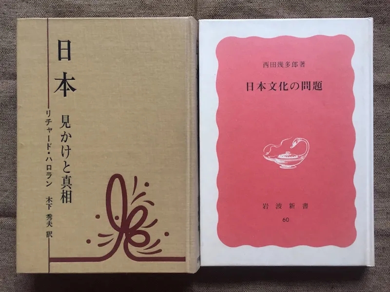 兩種類似小精裝的小三十二開日版書:《日本的外在與真相》(理查德·哈洛倫著,木下秀夫譯,時(shí)事通信社1970年4月版)與《日本文化的問(wèn)題》(西田幾多郎著,巖波書店1982年3月版)
