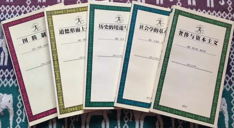 再往前回溯,2000年至2002年,上海人民出版社推出了一套“袖珍經(jīng)典”(Pocket Classics)叢書,囊括了曾對(duì)近現(xiàn)代文明產(chǎn)生過(guò)深刻影響的法德兩國(guó)知識(shí)巨人的九種小書。普通平裝、編號(hào),統(tǒng)一的Logo和裝幀形式,像商務(wù)版“漢譯名著”或巖波新書那樣,不同的學(xué)術(shù)領(lǐng)域(哲學(xué)、社會(huì)學(xué)、人類學(xué)等),以不同顏色的來(lái)區(qū)分,通俗而又不失學(xué)術(shù)味道。我收了其中五種:康德的《道德形而上學(xué)原理》、尼采《歷史的用途與濫用》、列維-斯特勞斯《圖騰制度》、馬克斯·韋伯《社會(huì)學(xué)的基本原理》和維爾納·桑巴特的《奢侈與資本主義》。