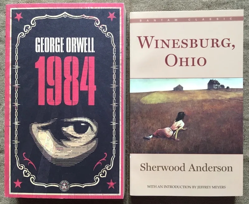 作者藏兩種英文文庫(kù):英國(guó)企鵝叢書《1984》和美國(guó)矮腳雞叢書《小鎮(zhèn)畸人》