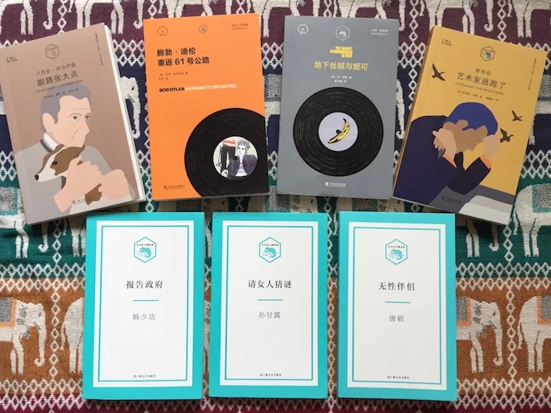 近十年前,在小精裝甚囂塵上的時(shí)期,曾以一套十種“新文藝現(xiàn)代藝術(shù)大家隨筆”的軟精系列,刷新了時(shí)人的袖珍本美學(xué)觀的上海文藝社,近來(lái)又推出了“小文藝·口袋文庫(kù)”,按內(nèi)容分為“知物”“知人”“小說(shuō)”和“33?”等子系列,涵蓋隨筆、傳記和純文學(xué)等題材。給人的感覺應(yīng)該是一個(gè)開放性文庫(kù),以后應(yīng)會(huì)納入更多的內(nèi)容。作為無(wú)勒口普通平裝本,這套小書把Logo、顏色區(qū)分、書脊的功能設(shè)計(jì)等文庫(kù)要素做到了極致,近乎尤物級(jí),無(wú)言地詮釋著出版方所謂“小而簡(jiǎn)就是美”的主張,令人愛不忍釋。我純憑興趣,暫入了八種,分別為西方流行文化系(“33?”)的《地下絲絨與妮可》([美]喬·哈佛著,姜亦朋譯,2019年1月版),《鮑勃·迪倫:重返61號(hào)公路》([意]馬克·波利佐提著,洪兵譯,2020年6月版);“知人”兩種:美國(guó)小說(shuō)家塞林格的傳記《藝術(shù)家逃跑了》([美]托馬斯·貝勒著,楊赫怡譯,2020年2月版),英國(guó)藝術(shù)家盧西安·弗洛伊德傳記《眼睛張大點(diǎn)》([美]菲比·霍班著,羅米譯,2020年2月版);還有三種新銳小說(shuō):《請(qǐng)女人猜謎》(孫甘露著,2017年6月版),《報(bào)告政府》(韓少功著,2017年4月版)和《無(wú)性伴侶》(唐穎著,2017年4月版)。