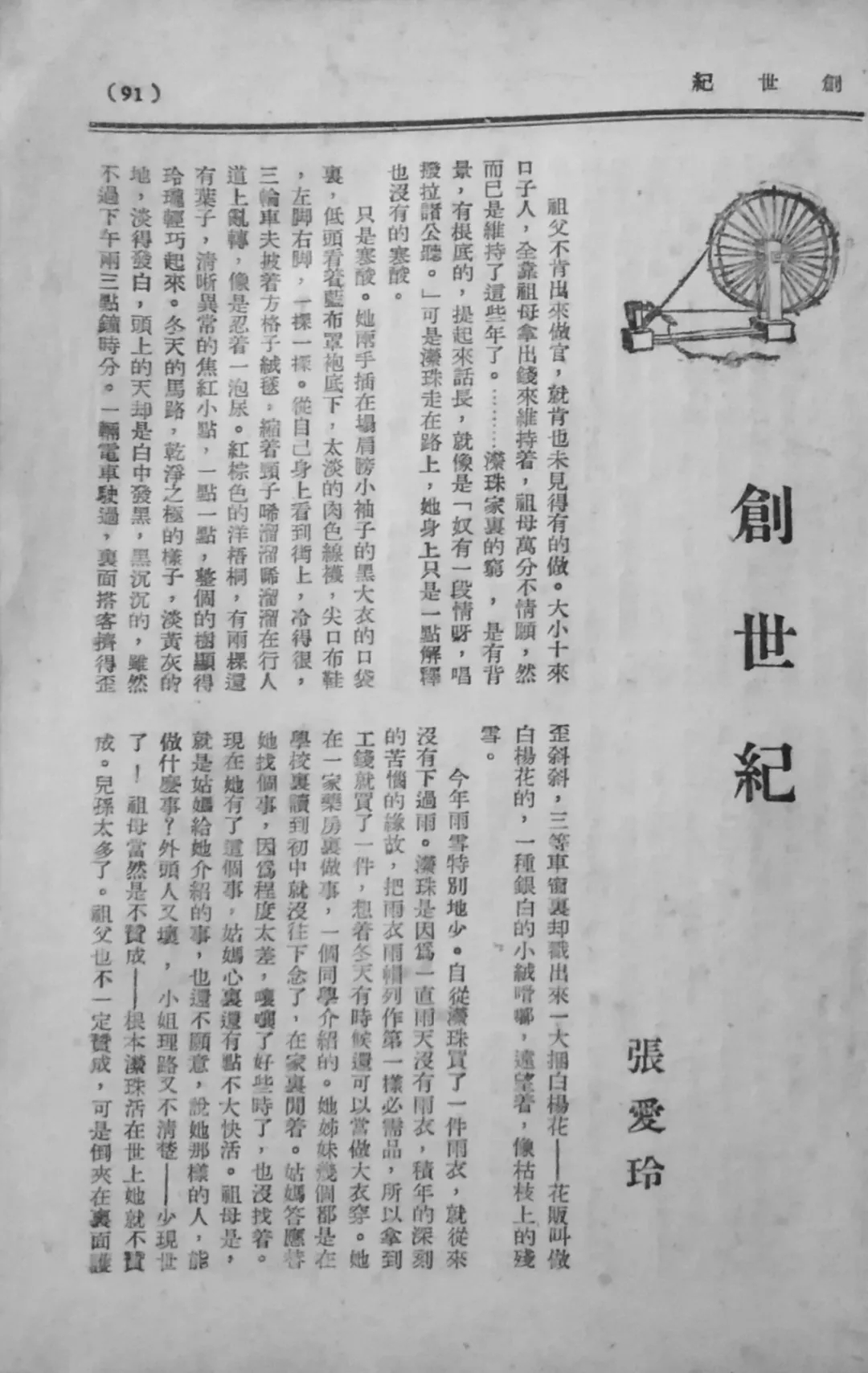 一九四五年三月第十四卷第六期《雜志》首次刊載張愛玲作《創(chuàng)世紀》