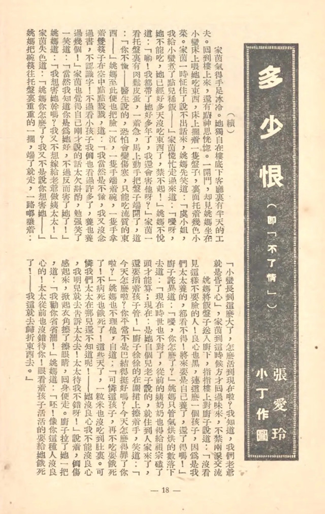 一九四七年五月《大家》第二期首次刊載張愛玲作《多少恨》